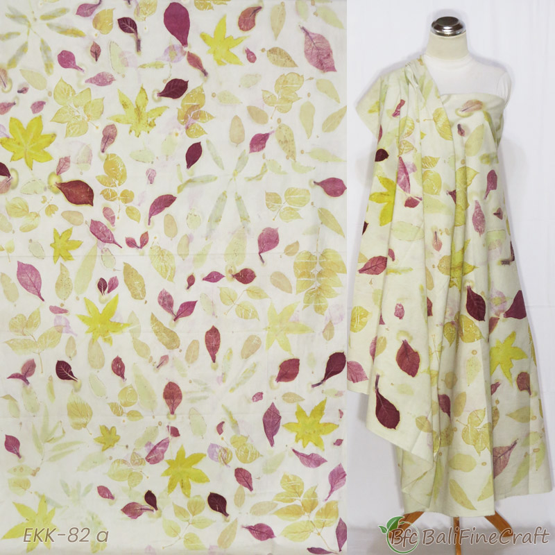 Kain unik terbuat dari bahan katun primissima tanpa menggunakan pewarna alami dengan motif daun jati, kayu lanang, eucalyptus jarak kepyar dan tabebuya.