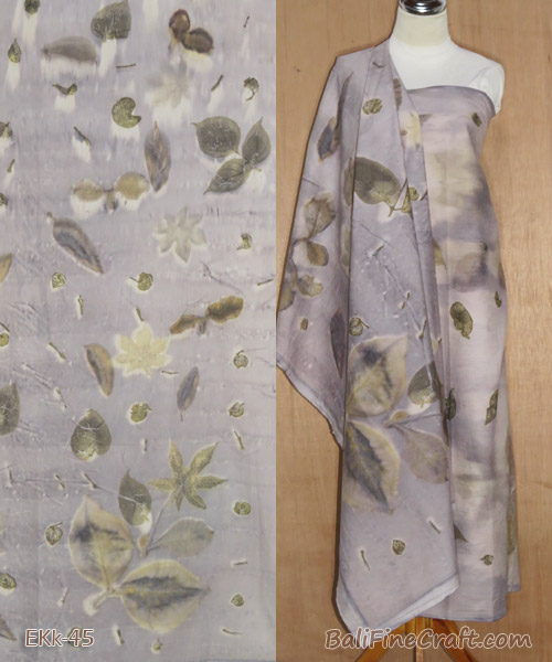 Kain unik terbuat dari bahan katun Primissima menggunakan pewarna alami tunjung dengan motif daun jati, jarak kepyar, lanang dan eucaliptus.