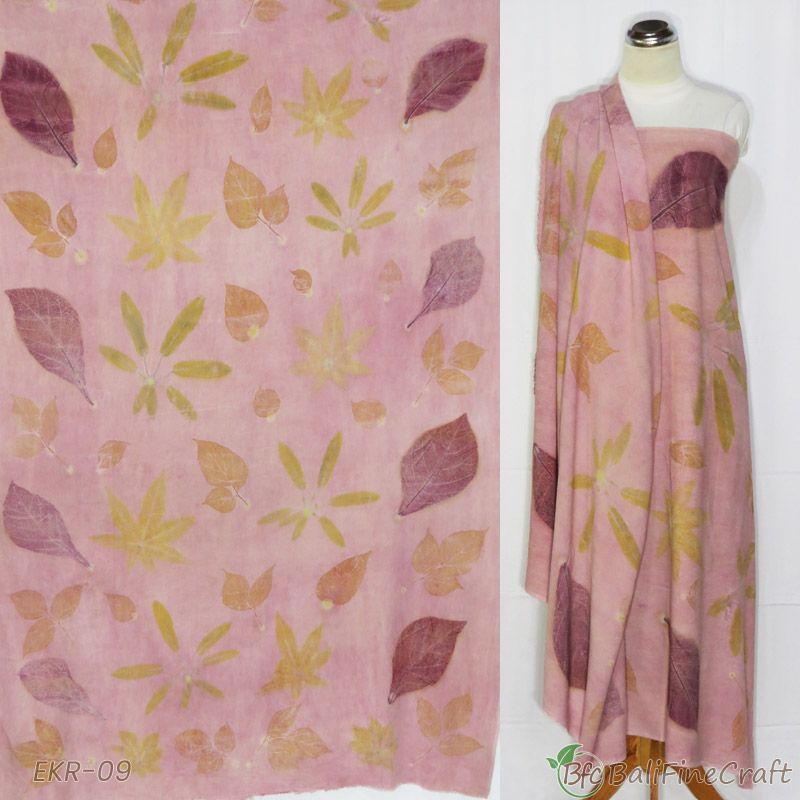Kain unik terbuat dari bahan rayon menggunakan pewarna alami secang dengan motif daun kayu lanang, jati dan tabebuya.
